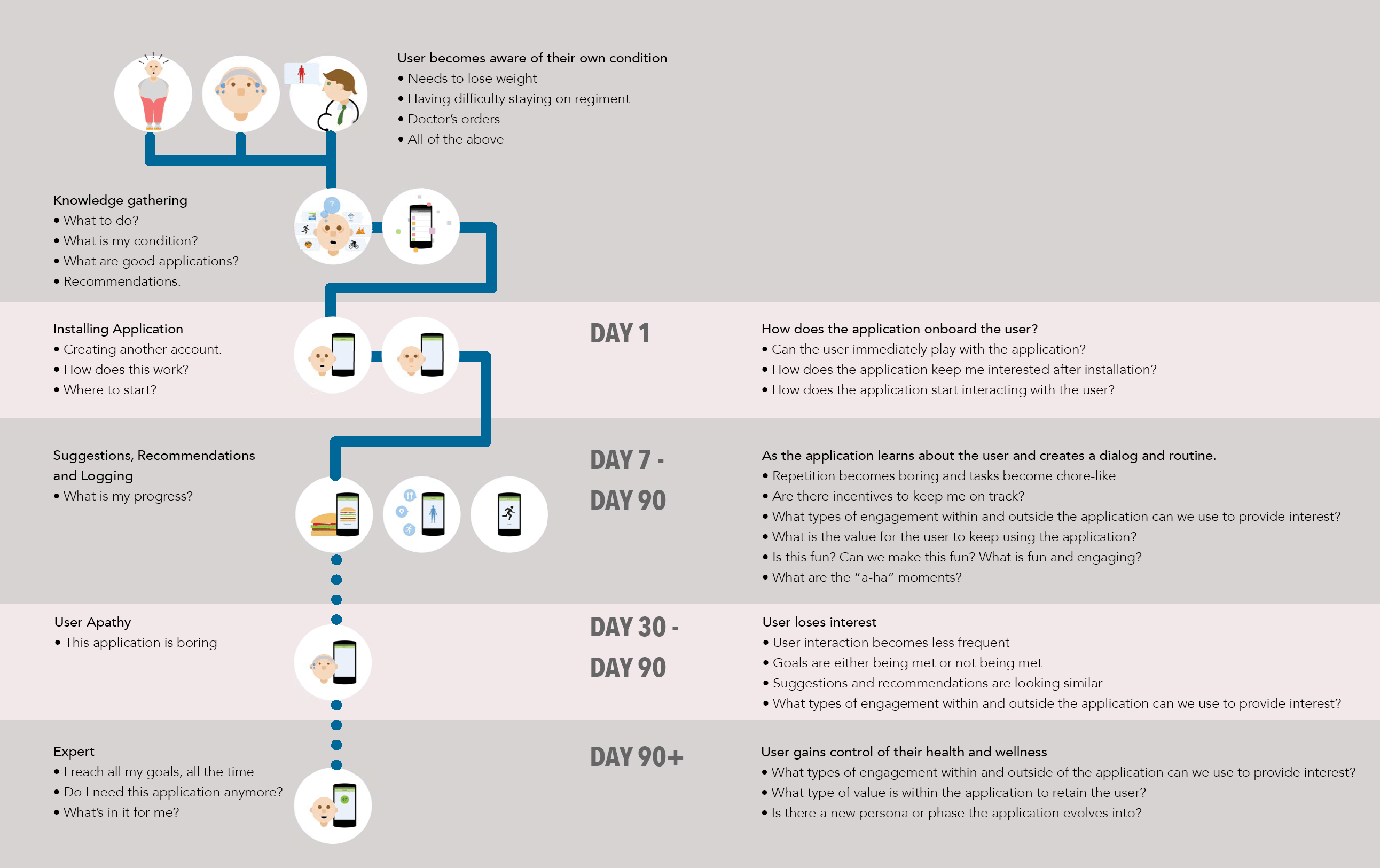 We understood user pain points with regards to logging nutrition and body vitals on a daily basis. I worked to define and design the technology integration points within the app and user workflows.